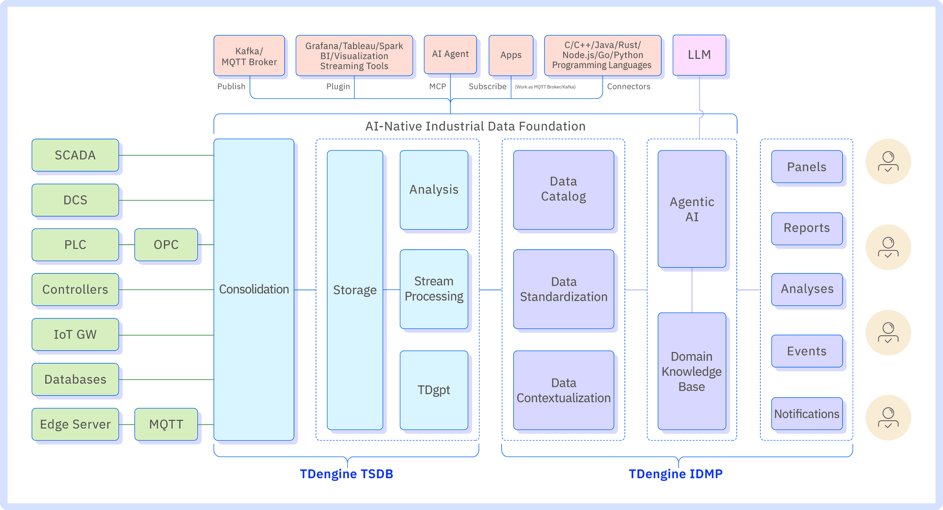 TDengine connects to sources like OPC, MQTT, and Kafka with built-in ETL for cleaning and transforming data. Its tree hierarchy, reusable templates, and rich metadata bring contextualization and standardization to your data and help you prepare your business for AI-driven innovation.