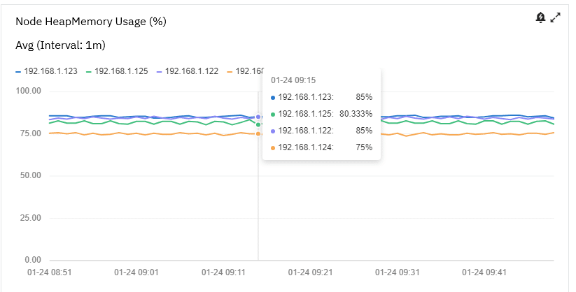 Elasticsearch: Each of the 4 nodes used more than 54 GB of memory.