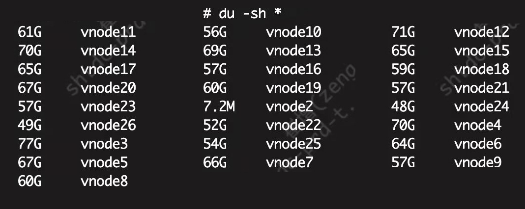 We chose to deploy on a three node cluster in single-copy mode. Each node is configured with 8 Cores, 16 GB RAM and a 500G hard drive. There are 3 super tables and 276571 tables in the current environment.