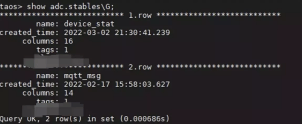 To store this data, DJI Automotive defined two supertables: device_stat to store metrics reported by vehicles and mqtt_msg to store MQTT messages.