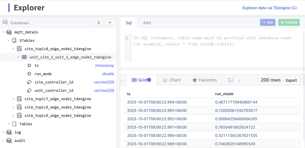 You can see that supertables have been created and incoming data is being stored at the edge.