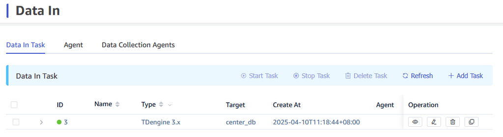 . From the main menu on the left, click Data In to see the TDengine 3.x replication task: