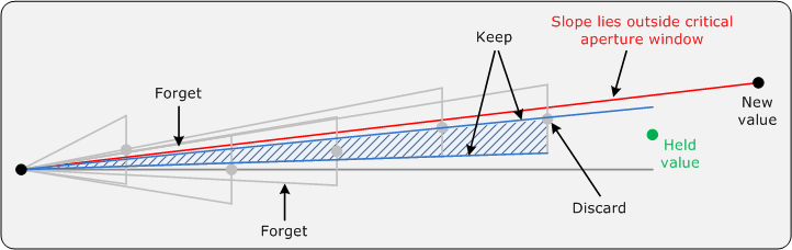 Data Archive was designed in an era where both compute and storage were scarce. Its primary objective was to store as much data as possible using as little resource as possible. To achieve this, it adopted compression techniques such as the swinging door algorithm, which reduces data volume by discarding redundant points while preserving the overall shape of the signal.