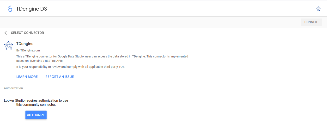 Select the TDengine connector and click Authorize. Enter your Google credentials as prompted.