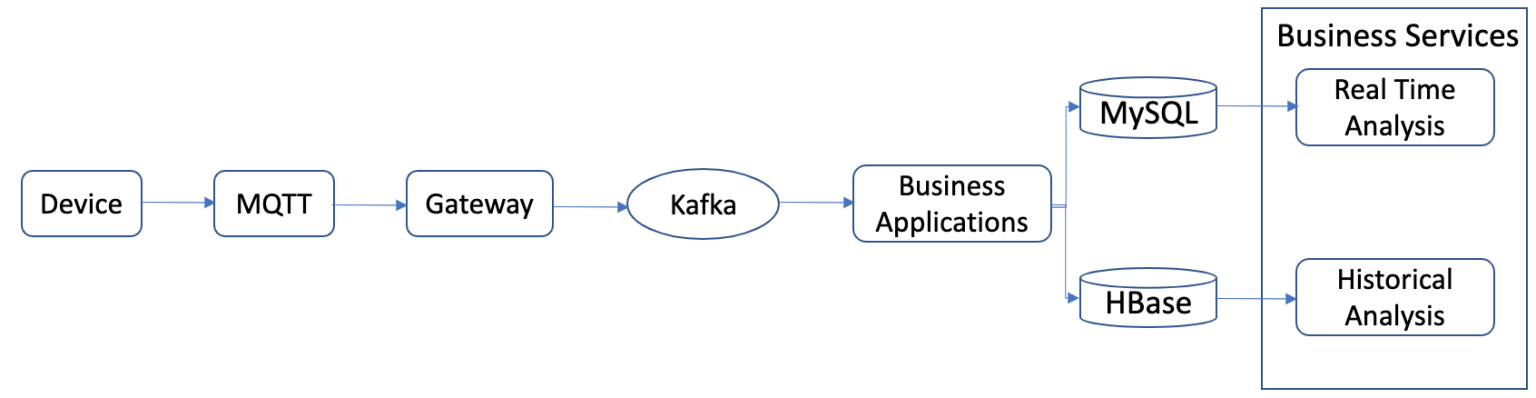 Originally, the system consisted of MySQL + HBase for data storage. MySQL stores the latest real-time data from the devices, and HBase stores the historical data. The high-level architecture is as follows: