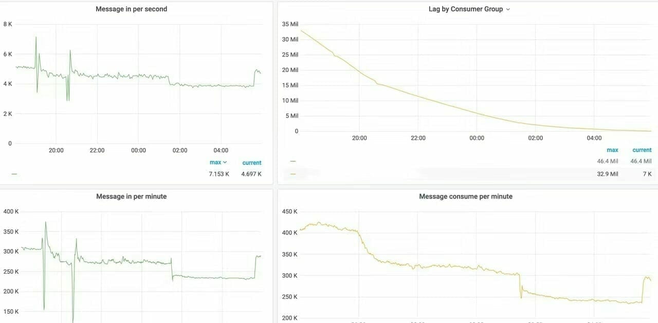 We decided to use the batch writing mechanism with configurable single batch data size and installed TDengine on a single-node with a default configuration of 8 cores, 32 GB RAM and 500 GB storage. We decided to use the RESTful API to write data. There was no issue when writing 4k/s but the peak value was 7 k/s. Since the amount of information contained in a single message was too high, it is split into 30 pieces and written to TDengine. So in actual processing the actual write is 210 k/s, which is higher than what we could achieve with HBase cluster. With a reduction in resources used and better performance, not to mention a simpler architecture with less maintenance, we were able to reduce costs significantly