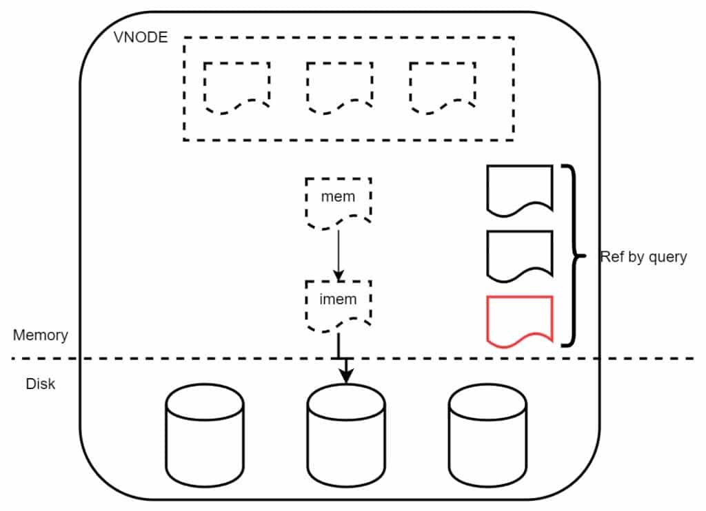 A: No. Each query handle receives a version number when opened, indicating the latest data version written to the Vnode. A query can only see data versions up to this number. During snapshot taking, mem/imem data covered by this version number will be referenced by the query. As new data is written, new mem/imem data won’t be referenced by the long query, limiting RESEEK to at most twice per long query.