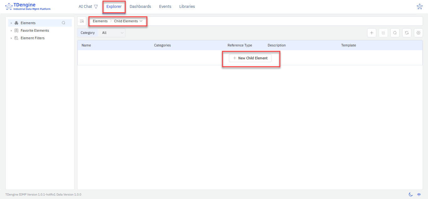 From the main menu, open Explorer. Under Elements > Child Elements, click New Child Element.