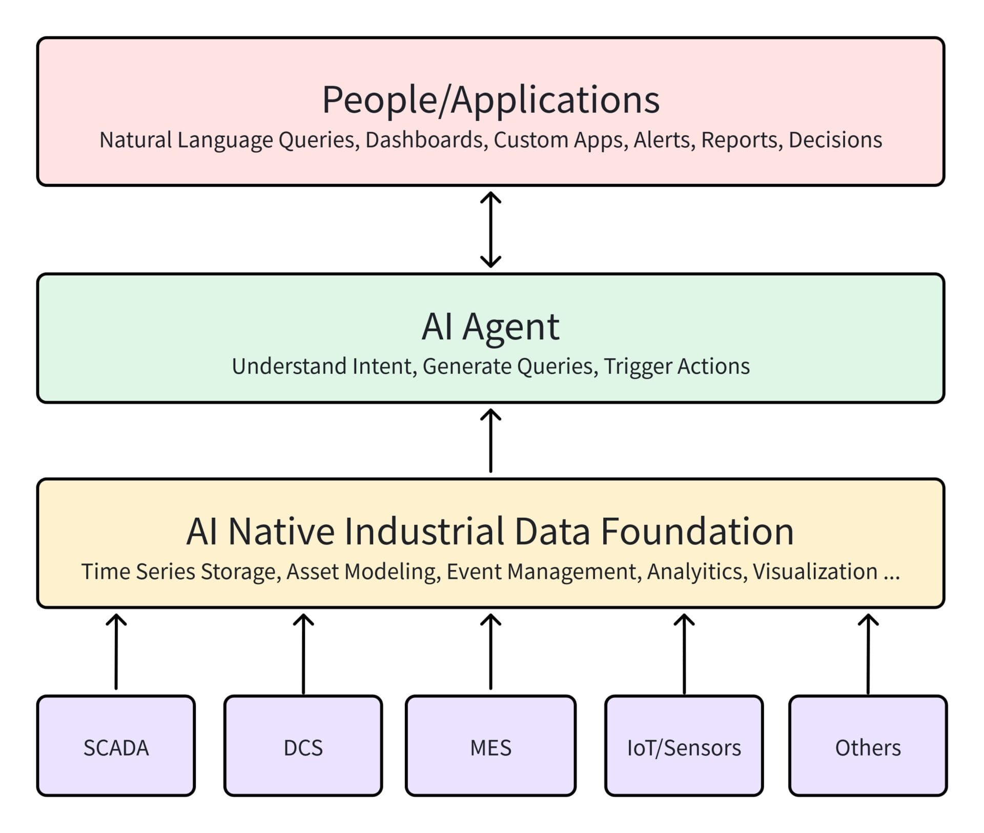AI introduces a fundamentally different way to interact with industrial systems. Instead of navigating predefined applications, users can interact with AI agents directly, using natural language to express intent and obtain results.