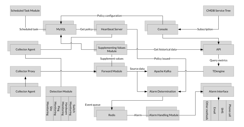After Nightingale monitoring is connected to TDengine, the architecture diagram is as follows.